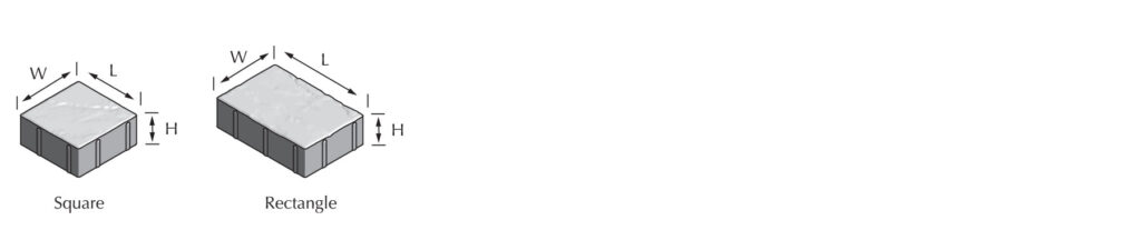 | Rectangle | 5.43″ x 8.19″ x 2.375″ | 8 lbs. | 384 | 121 | 3,072 lbs. |
